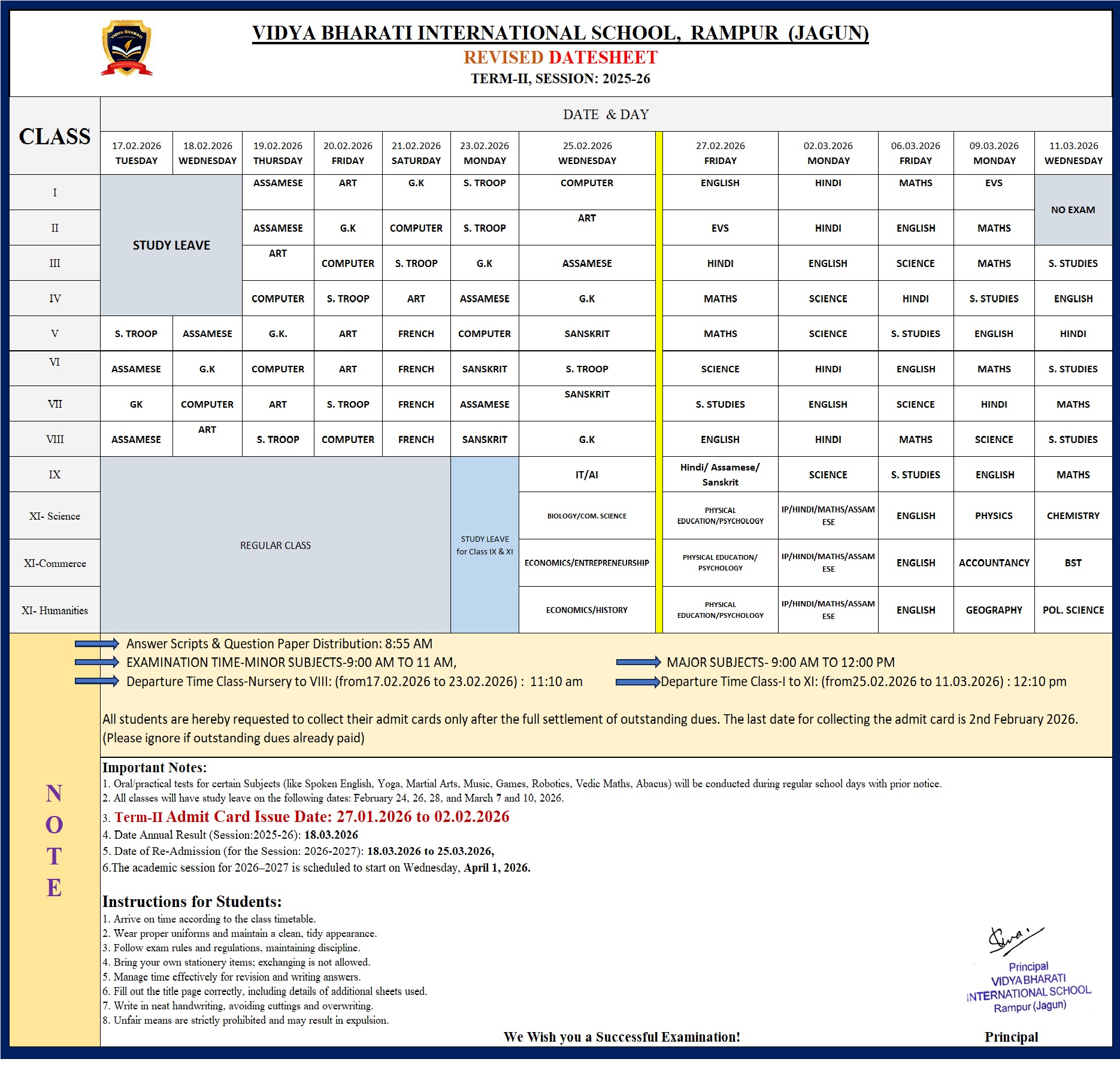 Vidya Bharati International School is committed to catering to the needs of the hour. The schooling here nurtures young minds with values and innovation, shaping them into sound personalities under the guiding philosophy, “न हि ज्ञानेन सदृशं पहित्रहिि हिद्यते” (There is nothing in this world as purifying as knowledge). Vidya Bharati International School, Rampur Jagun, is the second branch of the Vidya Bharati Trust. The first branch was established at Ahukhat, near Dangria Baba Mandir, Balugada, in Tinsukia. Both schools—at Tinsukia and Jagun—are co-educational institutions that pursue academic brilliance and all-round excellence